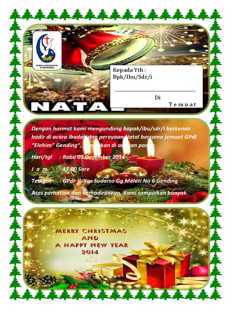 Undangan Natal / (DOC) UNdangan natal naposobulung.doc | Bayu Sugara - Academia.edu. Download undangan natal 2017 cdr word pdf lengkap. Lihat ide lainnya tentang natal, undangan, karangan bunga natal. Bolehkah seorang muslim menghadiri perayaan natal jika diundang? Gw mau undang kalian ke perayaan natal bersama gbi graha bethel mount hermon. Text of 21542974 format undangan natal.